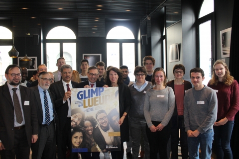 Cette rencontre entre des jeunes de différentes convictions et les représentants des cultes reconnus se déroulait dans le cadre de la conférence de presse qui s’est tenue pour sortie de la deuxième édition du magazine interreligieux « Glimp / Lueurs », édité par la Région de Bruxelles-Capitale, et présentant les interviews de quatorze jeunes à propos de leur façon de vivre leurs convictions au quotidien.