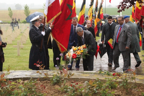 Sous une pluie battante, ambassadeurs, consuls, personnalités politiques et citoyens ont rendu hommage aux soldats originaires du Maghreb, du Sénégal, de Belgique et de France, tombés pour la sauvegarde de la démocratie face à l’ignominie nazie.